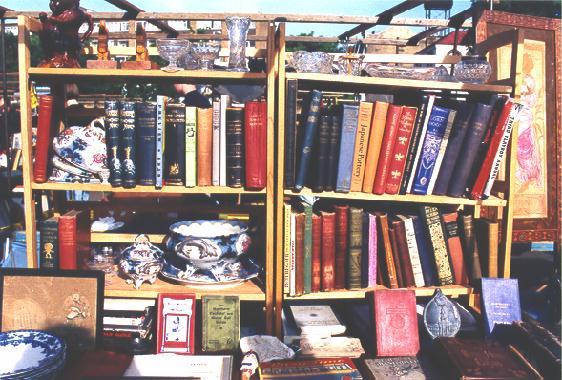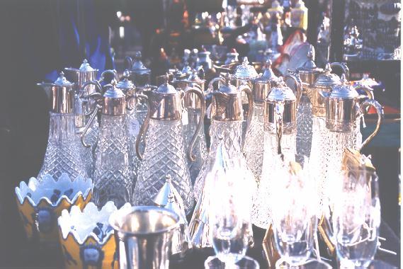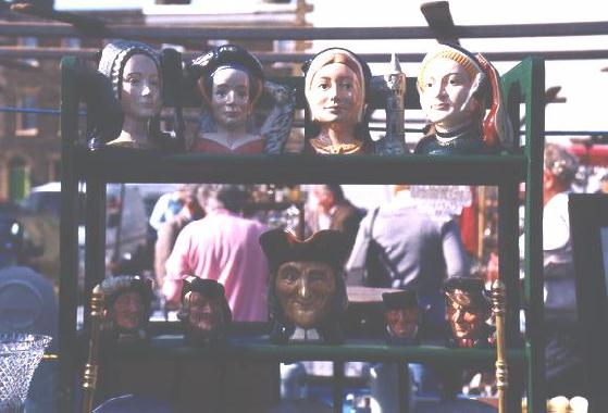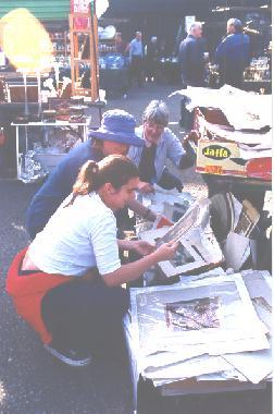 Angela Moor rummaging through boxes at a stall with Anita Gustavson from Australia and Patricia Falcao from Portugal, who attended the advanced course Conserving Photographs 2. at The Centre in 1999. Prices at the market can range from a few pounds to thousands and some stalls even take "credit cards". You never can tell what you will find. There is always the excitement of the hunt, with the hope of finding something rare, beautiful and cheap! Ian and Angela have an ulterior motive for getting the students out of their beds at the crack of dawn, their excuse, that it is a good exercise in image process identification and an ideal opportunity to build up a collection of comparative study images. It is no secret, however, that after an EARLY morning wandering about the market the tradition is that students treat the Moors to a Traditional English Breakfast at a "greasy spoon cafe" close by the market.