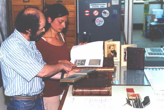 As part of the seven week "Certificated" course in 1999 Nausicaa Rigassi, from Switzerland, undertook a short research project on a group of photograph albums in The Centre's Teaching Collection. Her project was presented as a poster exhibit at the Photographic Materials Conservation Group Meeting at Birmingham in July 1999. Here Ian discusses with Nausicaa aspects of her project as part of her assessment.