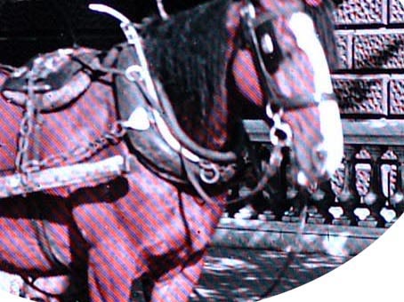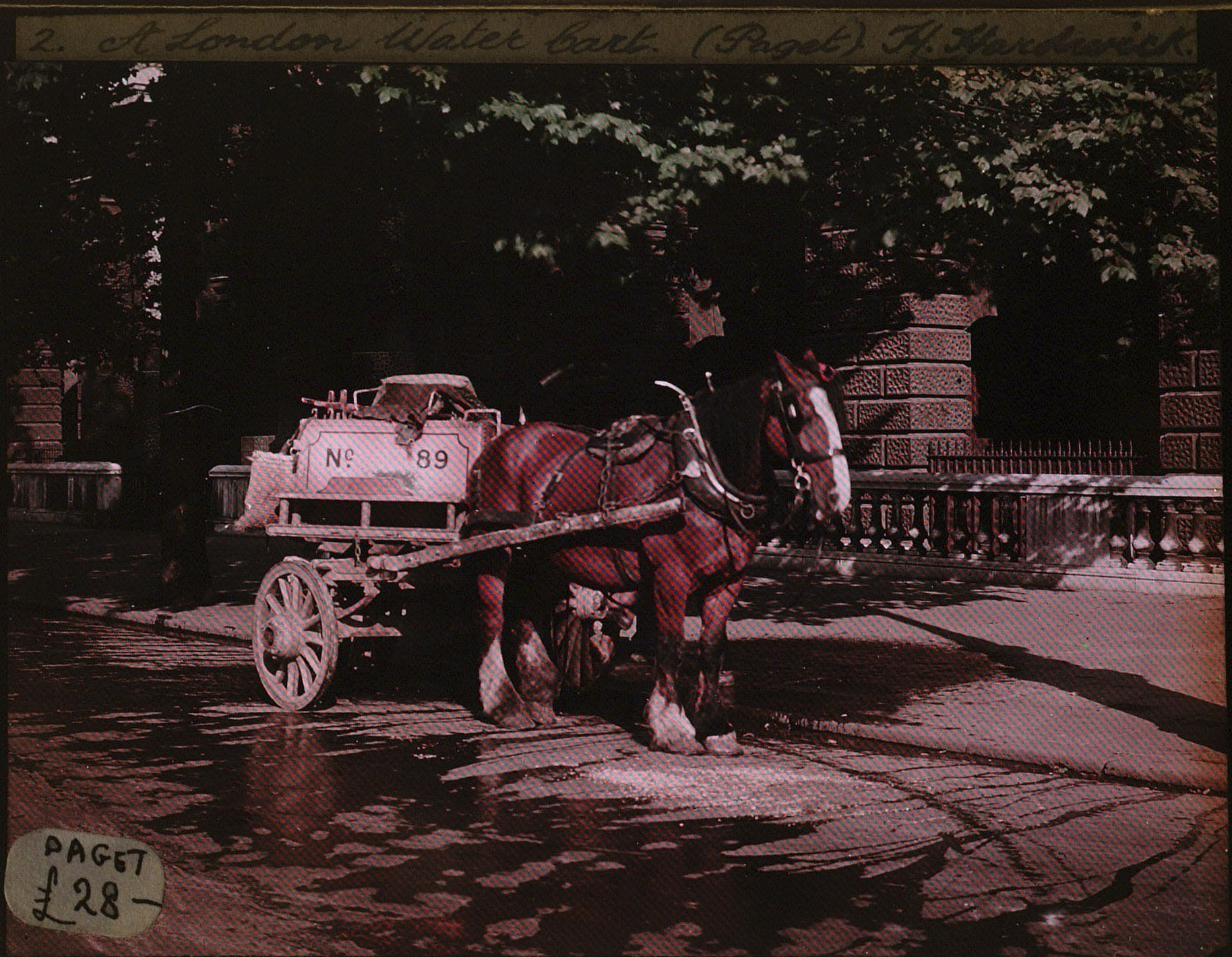 In 2000 Dino Makridis undertook a project on Tri-color screen processes, this detail from the Paget tri-colour screen plate of a "Water Cart No 89" circa 1912 clearly shows the printed colour distribution patterns.