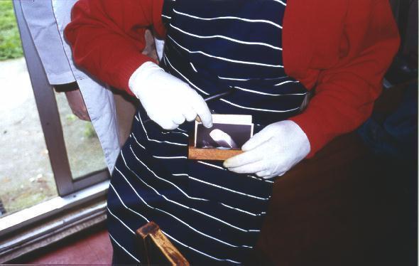 Nick Berkley examining a cased wet-collodion positive on one of the Moor's 'photo' safaris Nick, from The Royal Commission on Historical Monuments new Archive at Swindon, attended a number of The Centre's courses in 1998, including a basic four week practical workshop run by special arrangement and, running parallel to the advanced course.