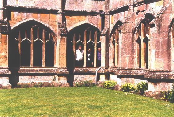 Elizabeth Hadlow from Australia, Rosina Herrera, and her father who visited her at The Centre, standing on the steps leading up to main door to the Abbey in June 1999. At the top of the stairs is the Great Hall which was the venue for the Photographic Materials Conservation Group meeting in 1998.